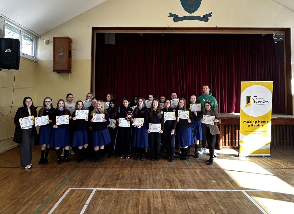 We were proud to welcome the Simon Community to our school this week as they presented our students with an award for achieving the highest participation in their 5K fundraiser last October. A special highlight of the day was an inspiring talk from Olympic athlete Jack Raftery, followed by a running workshop where students had the chance to put their skills to the test, finishing with a sprint challenge against him!